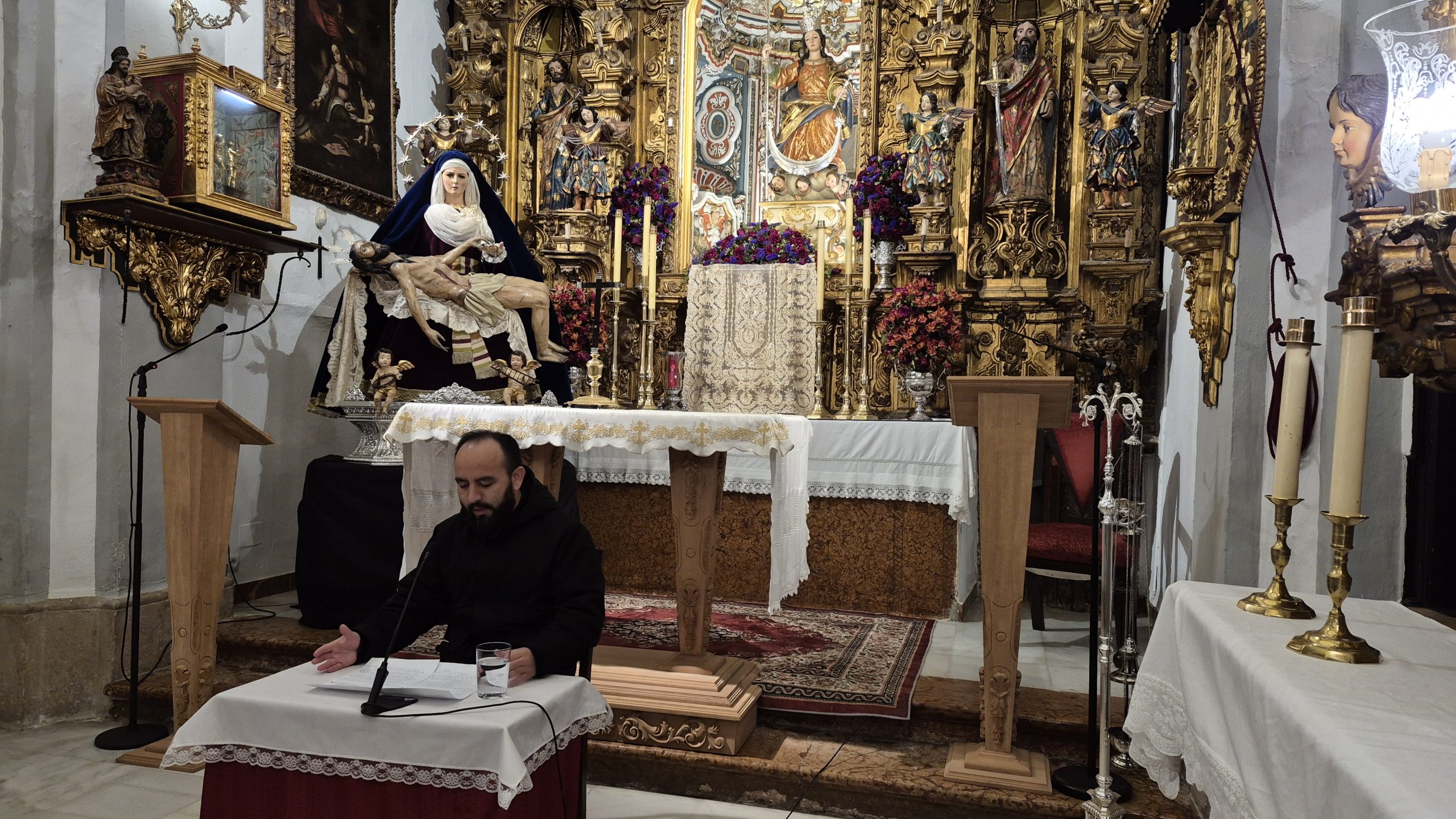 La sesión tuvo lugar en la Ermita de Nuestra Señora de la Aurora, un espacio profundamente ligado a la tradición devocional de la ciudad, y estuvo a cargo de don Diego Figueroa, vicario parroquial de la Iglesia Mayor Parroquial de San Mateo Apóstol, quien ofreció una reflexión centrada en el sentido profundo de la Cuaresma y en el papel que las cofradías están llamadas a desempeñar dentro de la vida de la Iglesia.