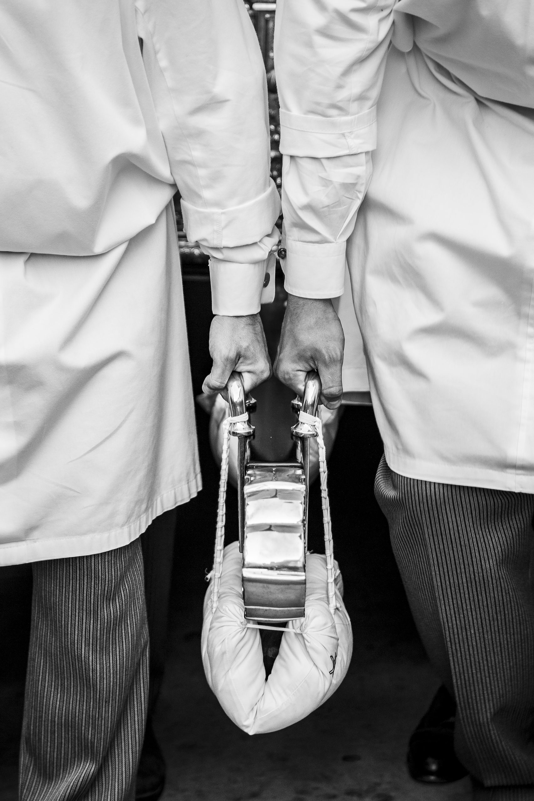 Concretamente, en 1838, la Archicofradía de Nuestro Padre Jesús Nazareno decreta la supresión del antiguo sistema de porte conocido como paso a correón —en el que se utilizaban correas de cuero anchas para portar las andas enganchadas al pecho y que actualmente se mantiene en la localidad malagueña de Casabermeja—, y promueve el porte a hombros. Es precisamente este gesto el que marca el inicio de una evolución estética y simbólica que derivará en la santería actual.