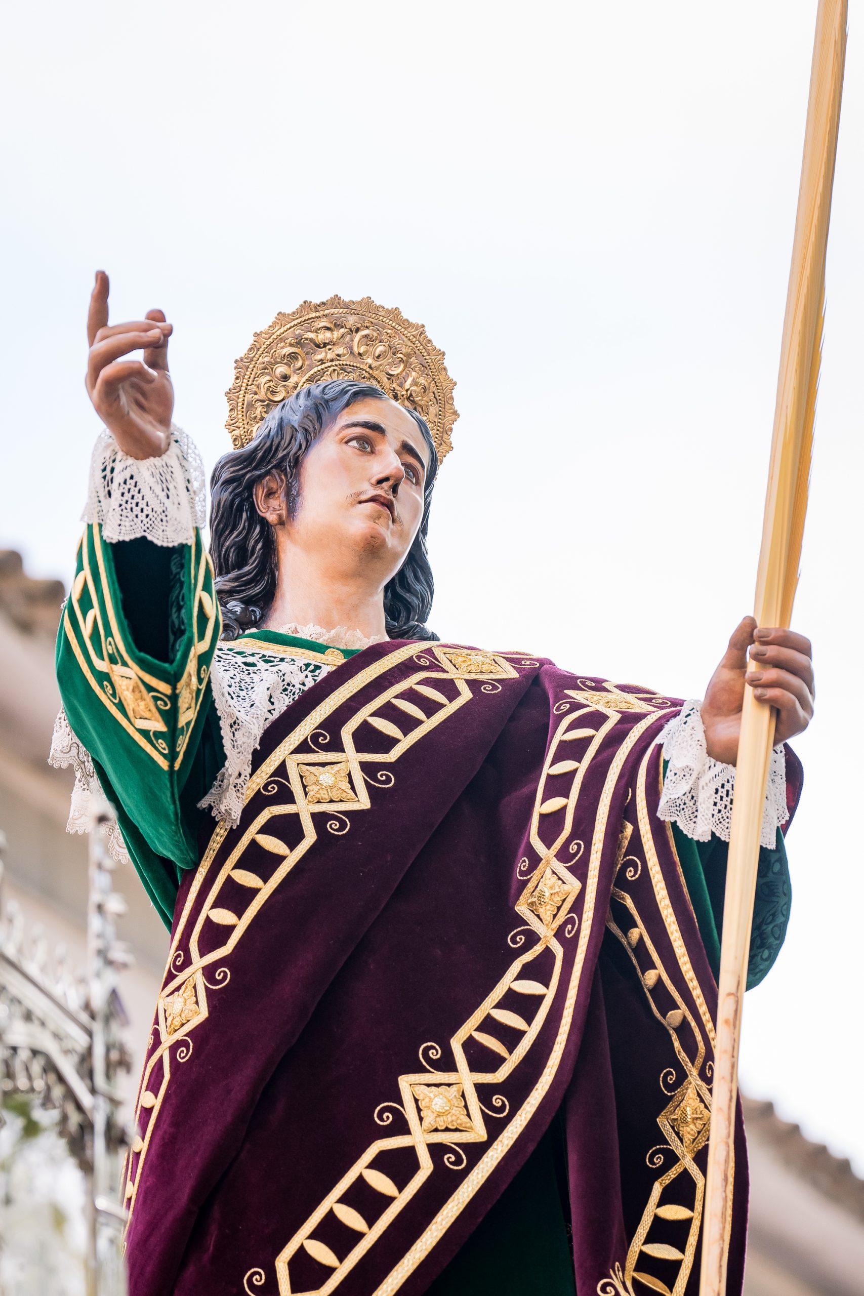 El 30 de mayo del 2018, se aprobó en Junta Ordinaria de la Venerable Archicofradía de Nuestro Padre adjudicar los trabajos de ejecución del trono de San Juan Evangelista a Orfebres Gradit, con el diseño calado sobre fondo de terciopelo morado., realizando su primera estación de penitencia el 19 de abril del 2019.