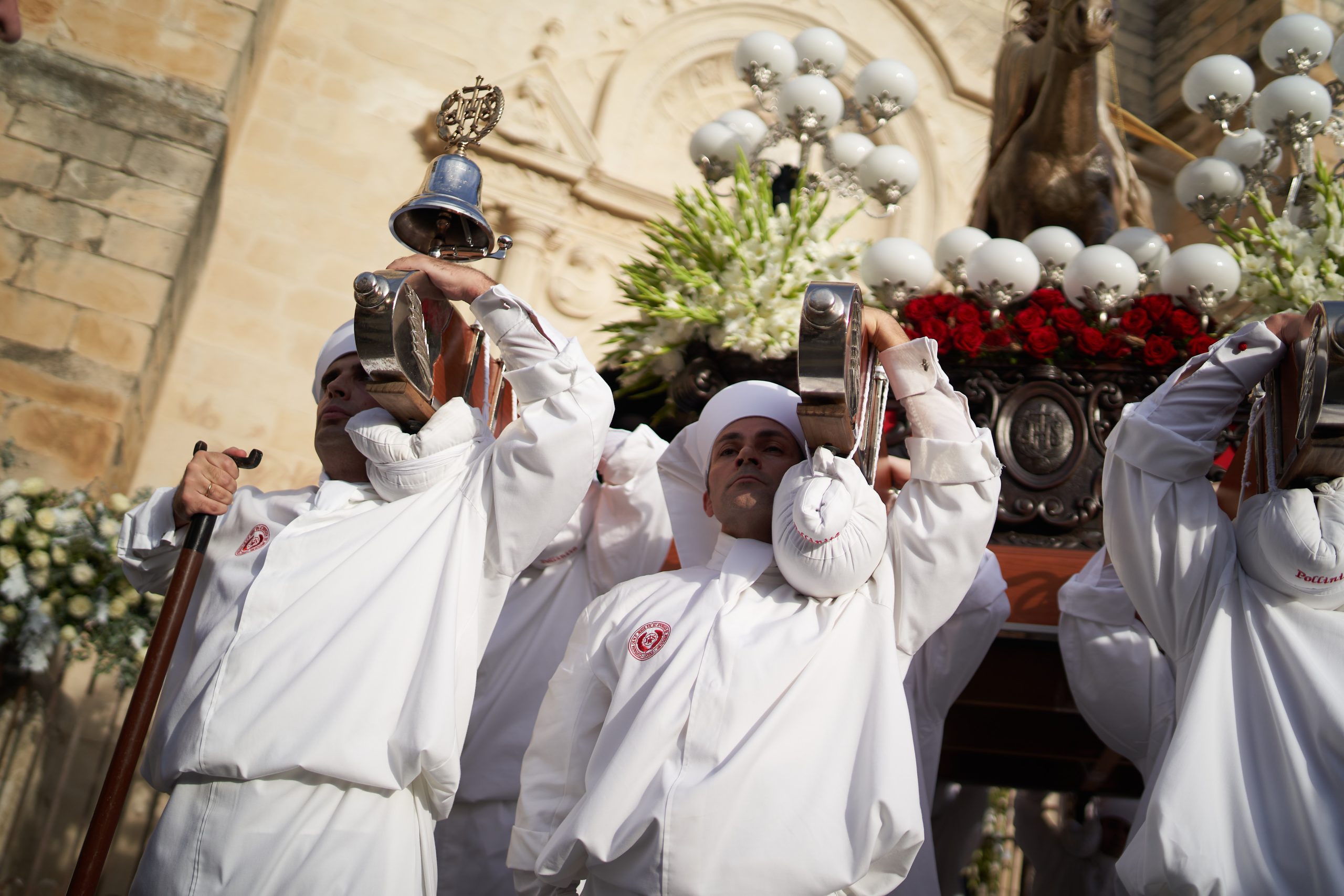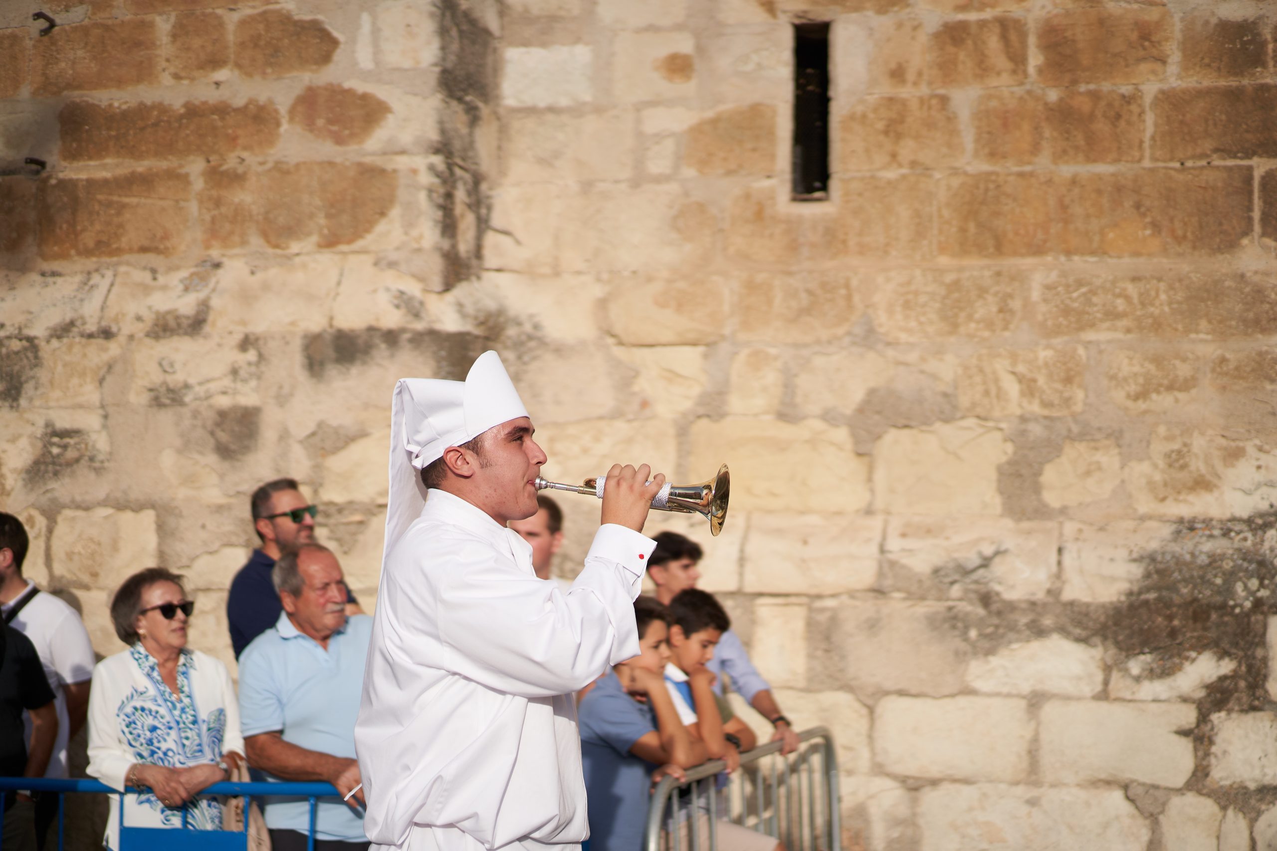 Realiza su estación penitencial junto a un gran número de hermanos portando sus palmas bendecidas, con especial participación de los más pequeños. Le acompaña el característico sonido del torralbo lucentino, uno de los elementos más singulares y distintivos del patrimonio sonoro de la Semana Santa de Lucena. Su salida procesional se organiza a través de la histórica figura del cuadrillero, preservando una forma de organización particular de esta tradición lucentina.