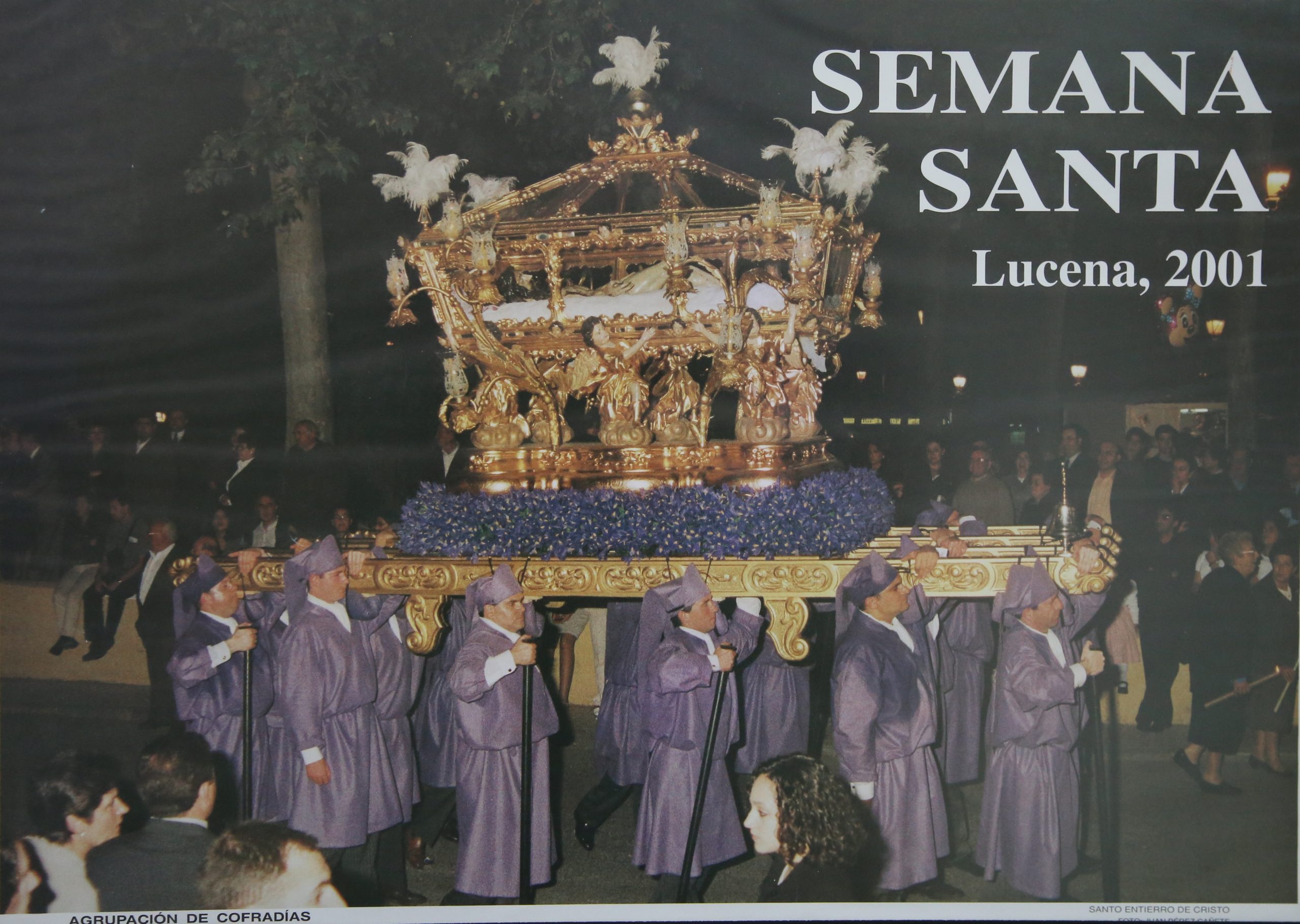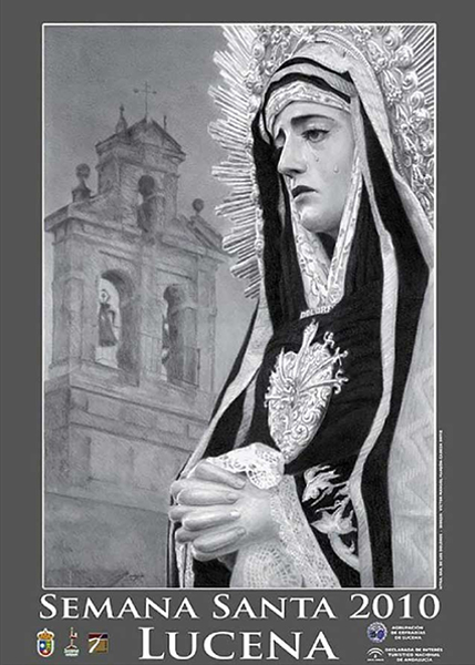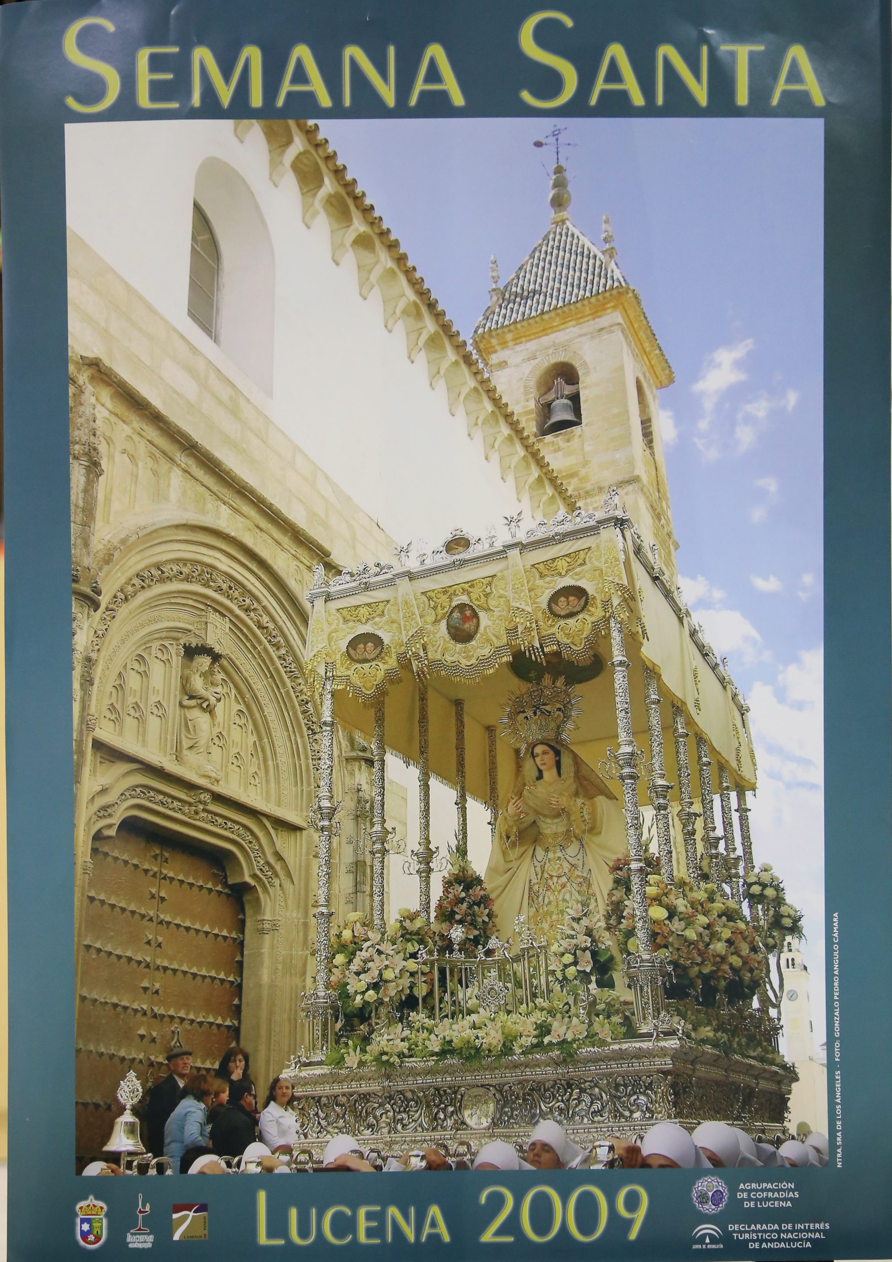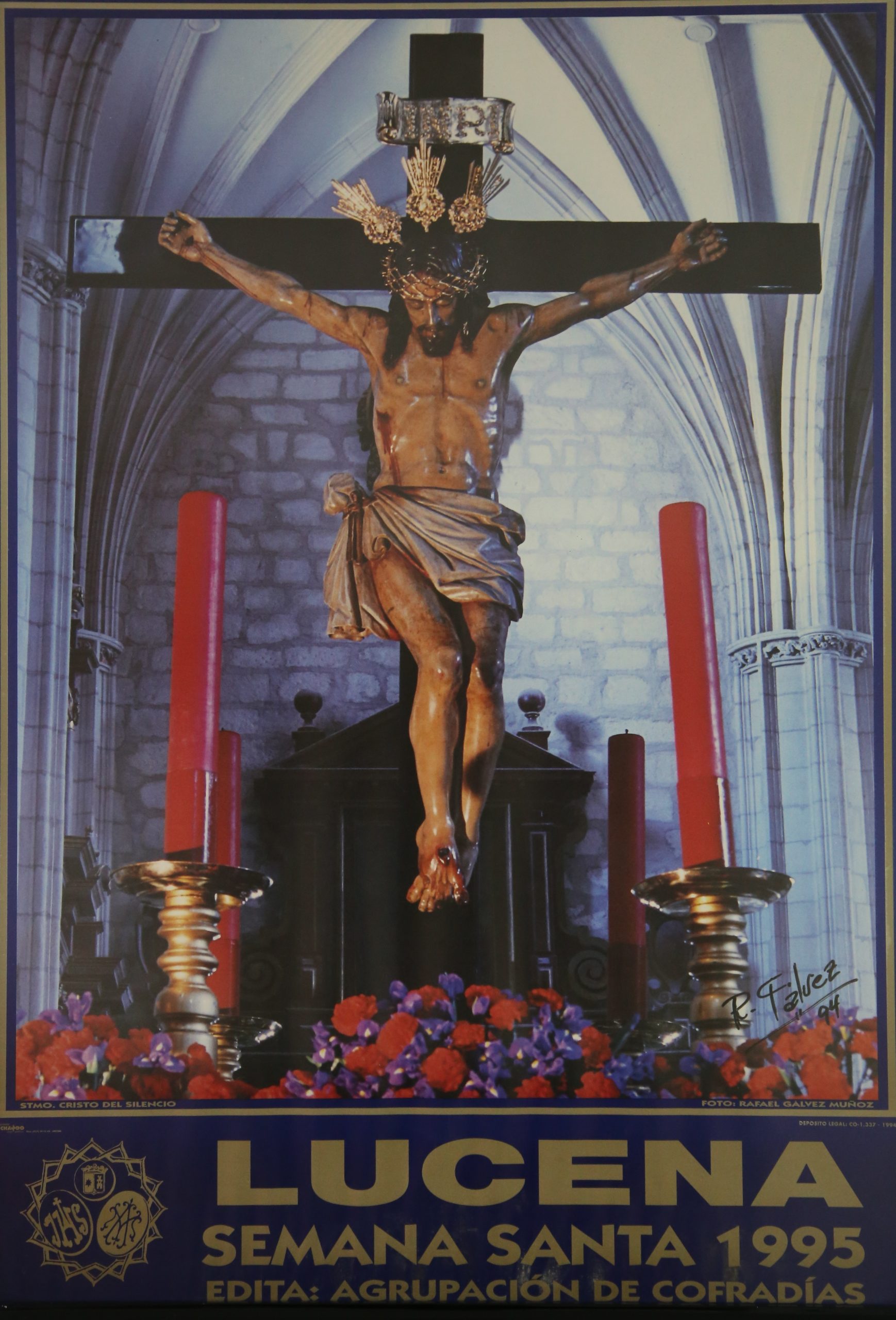 En este campo, el primer cartel semanasantero del que existe constancia fue realizado por Mariano Tenllado sobre linóleo e impreso en sus propios talleres en 1943, si bien comparte su temática pasionista con las fiestas aracelitanas. El año siguiente nació la Agrupación de Cofradías, que contaba entre sus objetivos con el de la protección y difusión de las celebraciones semanasanteras de Lucena. Pese a ello, salvo un cartel dibujado por Atienza que, en 1953, sirvió de portada al decenario local Producción, hasta 1970 no fue editado un cartel específico de Semana Santa, éste claramente expresionista y firmado por Fajardo, que señala el punto de partida de la rica cartelería que ha venido anunciando puntualmente las fiestas conmemorativas de la pasión, muerte y resurrección de Nuestro Señor Jesucristo.